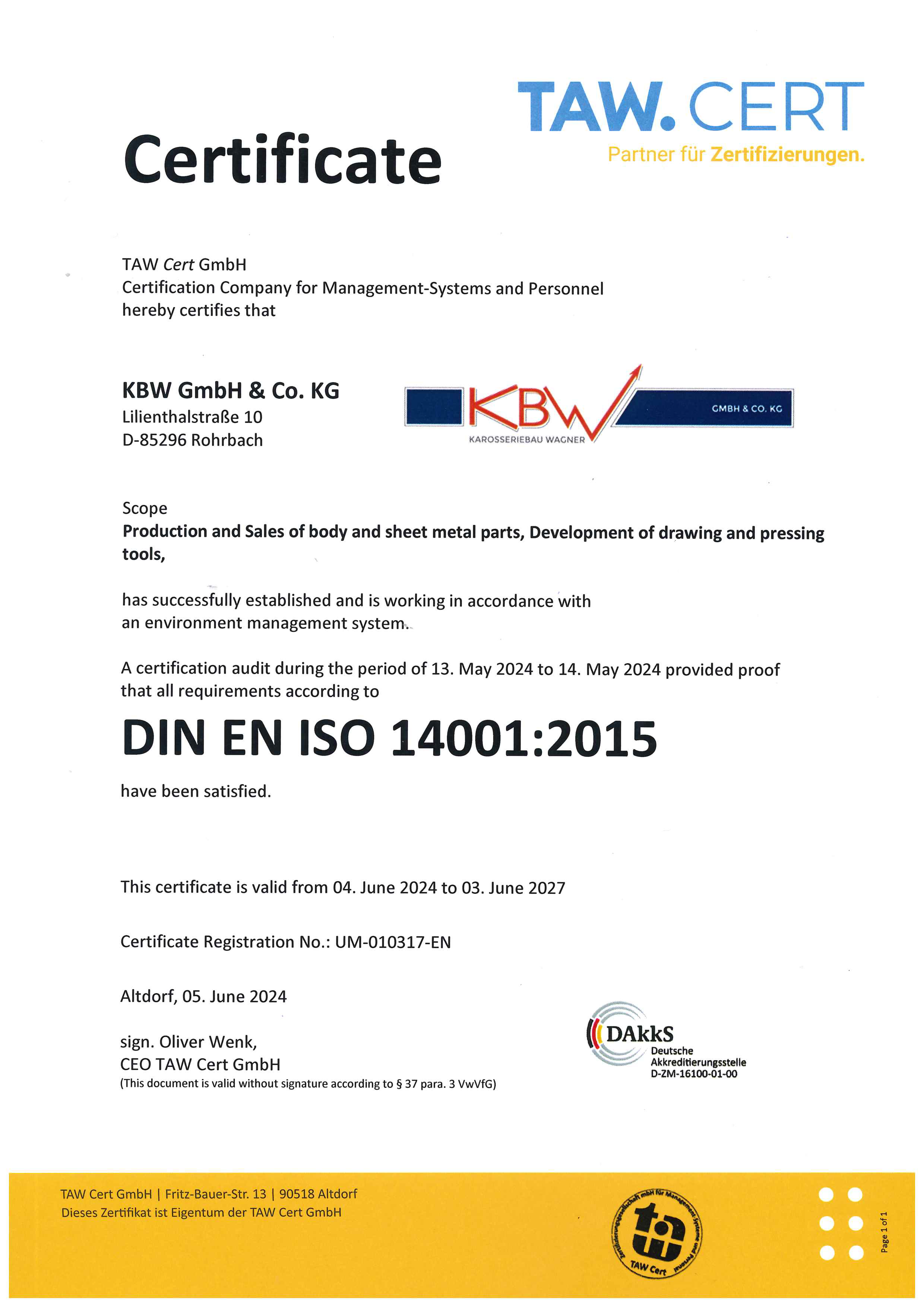 Our quality management ensures compliance with the requirements arising from the certification. We are ISO 9001 and ISO 14001 certified.